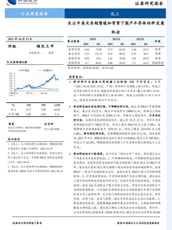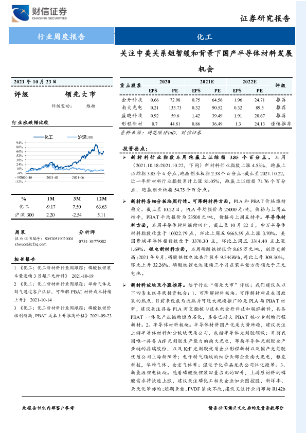 【财信证券】【20211023】20211023-财信证券-化工行业周度报告:关注中美关系短暂缓和背景下国产半导体材料发展机会-18页