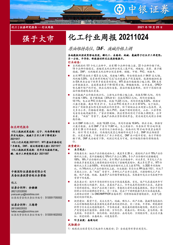 【中银证券】【20211025】20211025-中银证券-化工行业周报:原油维持高位,DMF、液碱价格上调-14页