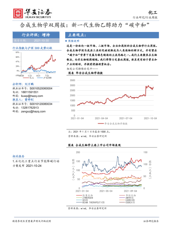 【华安证券】【20211030】合成生物学双周报:新一代生物乙醇助力“碳中和”-105页
