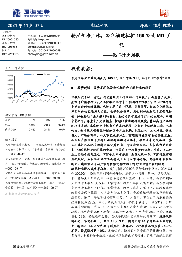【国海证券】【20211107】20211107-国海证券-化工行业周报:轮胎价格上涨,万华福建拟扩160万吨MDI产能-52页