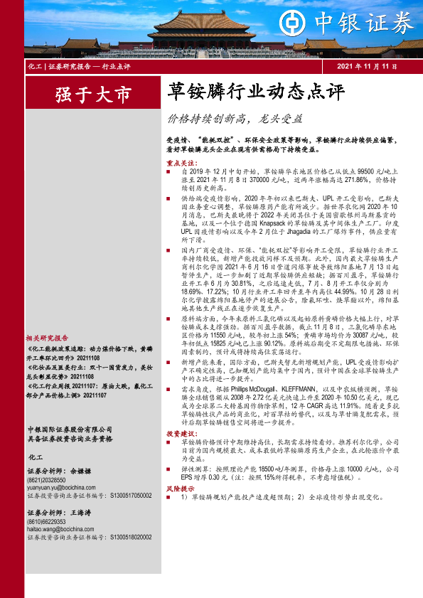 【中银证券】【20211111】20211111-中银证券-草铵膦行业动态点评:价格持续创新高,龙头受益-12页