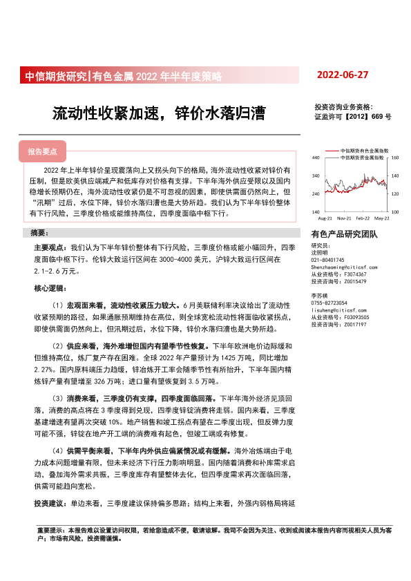 【中信期货】【20220627】有色金属2022年半年度策略:流动性收紧加速,锌价水落归漕-20页