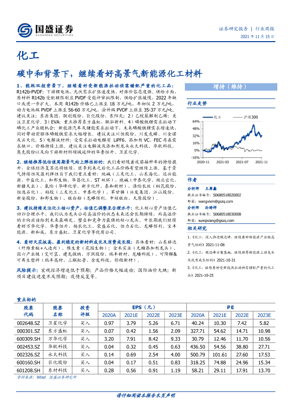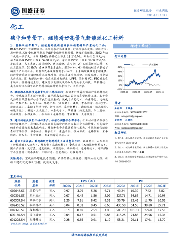【国盛证券】【20211115】20211115-国盛证券-化工行业周报:碳中和背景下,继续看好高景气新能源化工材料-13页