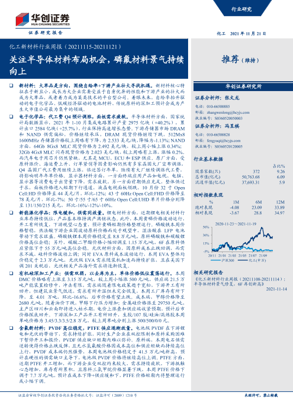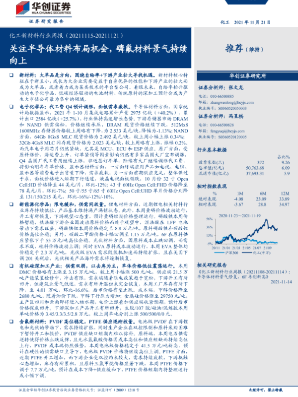 【华创证券】【20211121】20211121-华创证券-化工新材料行业周报:关注半导体材料布局机会,磷氟材料景气持续向上-37页