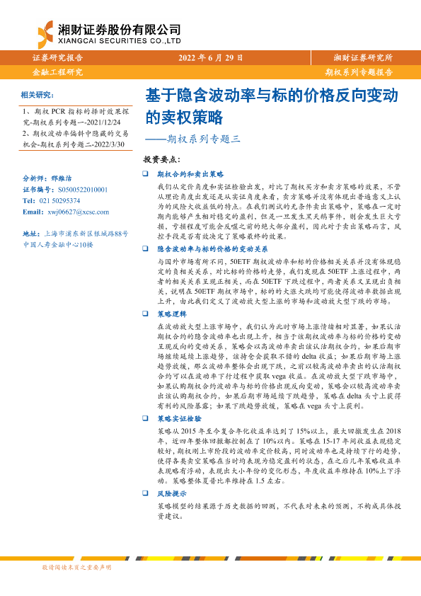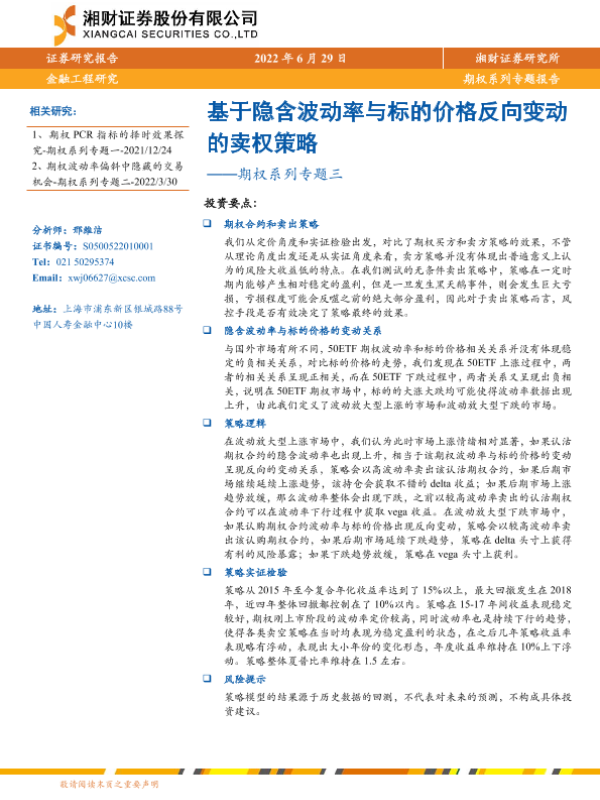 【湘财证券】【20220629】期权系列专题三:基于隐含波动率与标的价格反向变动的卖权策略-17页