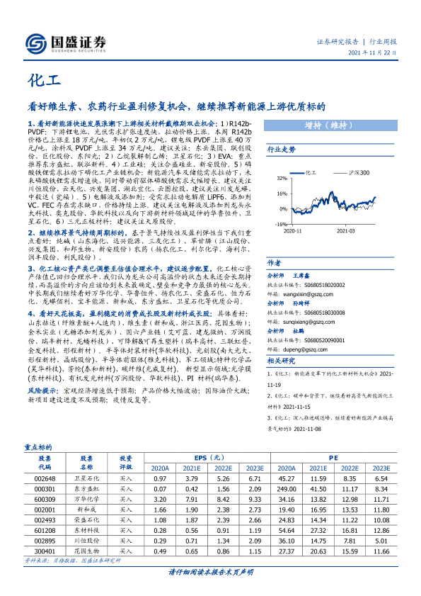 【国盛证券】【20211122】20211122-国盛证券-化工行业周报:看好维生素、农药行业盈利修复机会,继续推荐新能源上游优质标的-12页
