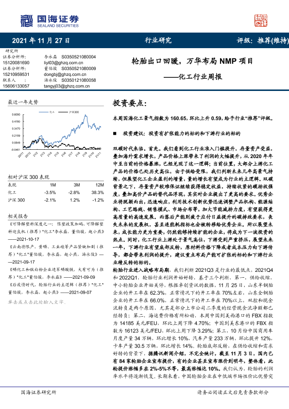 【国海证券】【20211127】20211127-国海证券-化工行业周报:轮胎出口回暖,万华布局NMP项目-51页
