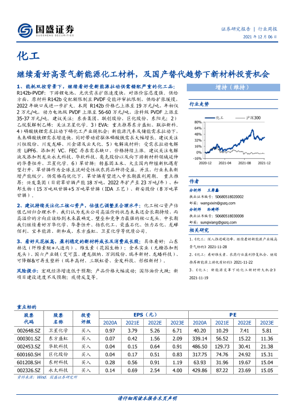 【国盛证券】【20211206】20211206-国盛证券-化工行业周报:继续看好高景气新能源化工材料,及国产替代趋势下新材料投资机会-13页