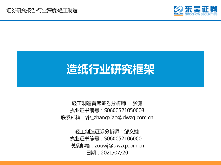 【东吴证券】【20210720】轻工制造行业:造纸行业研究框架-34页