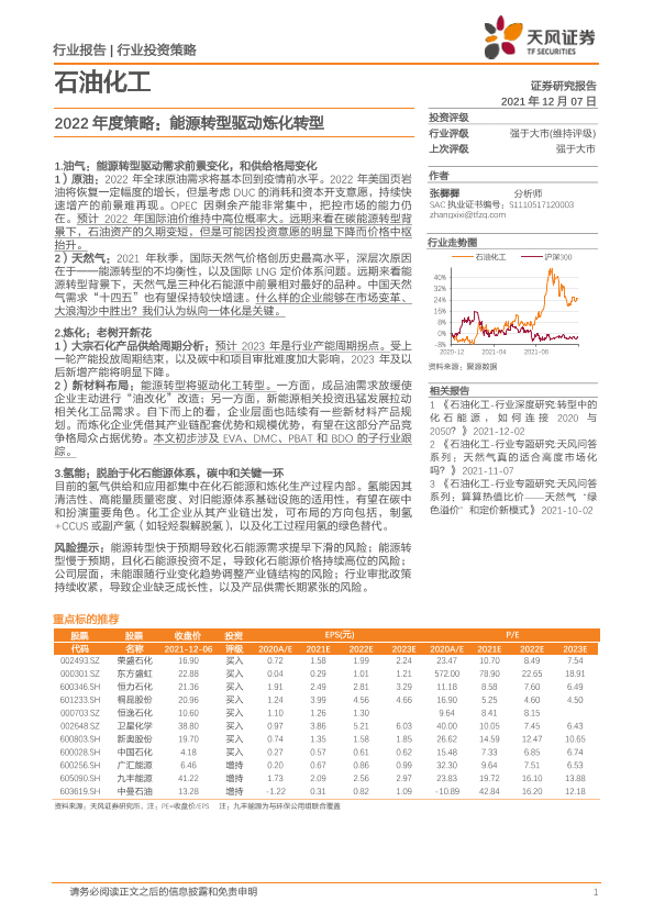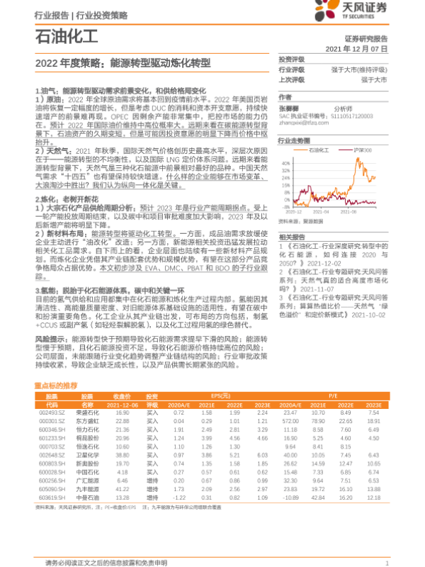 【天风证券】【20211207】石油化工行业2022年度策略:能源转型驱动炼化转型-19页