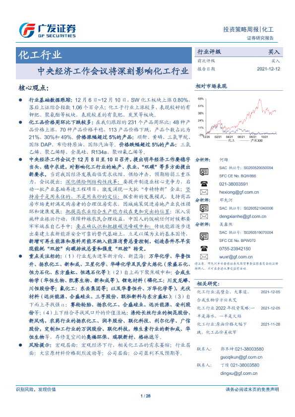 【广发证券】【20211212】20211212-广发证券-化工行业投资策略周报:中央经济工作会议将深刻影响化工行业-28页
