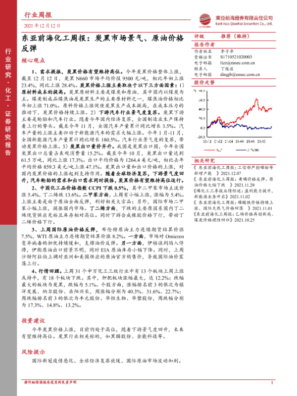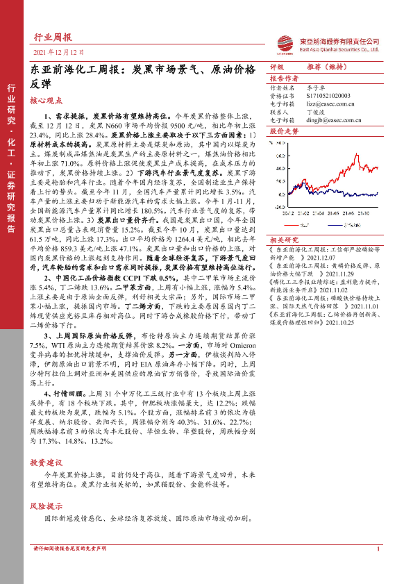 【东亚前海证券】【20211212】东亚前海化工周报:炭黑市场景气、原油价格反弹-20页