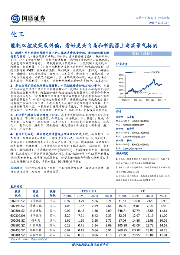 【国盛证券】【20211212】20211212-国盛证券-化工行业周报:能耗双控政策或纠偏,看好龙头白马和新能源上游高景气标的-12页