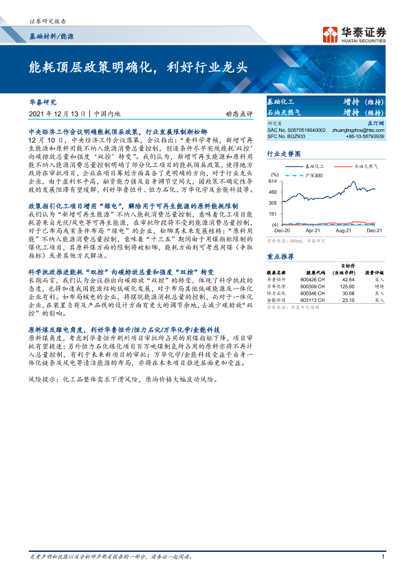 【华泰证券】【20211213】基础材料 能源:能耗顶层政策明确化,利好行业龙头-6页