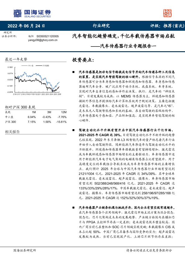 【国海证券】【20220624】汽车传感器行业专题报告一:汽车智能化趋势确定,千亿车载传感器市场启航-71页