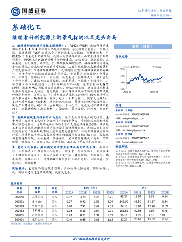 【国盛证券】【20211220】20211220-国盛证券-基础化工行业周报:继续看好新能源上游景气标的以及龙头白马-10页