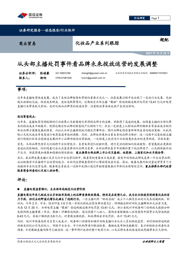 【国信证券】【20211222】从头部主播处罚事件看品牌未来投放运营的发展调整-8页