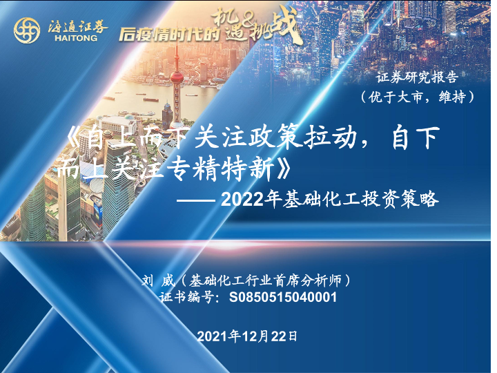 【海通证券】【20211222】2022年基础化工投资策略:自上而下关注政策拉动,自下而上关注专精特新-55页