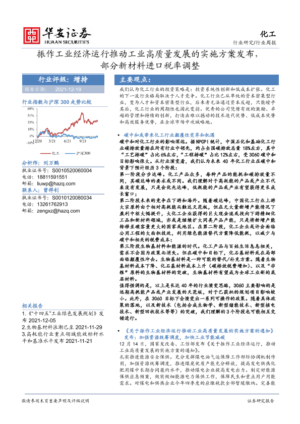 【华安证券】【20211219】20211219-华安证券-化工行业周报:振作工业经济运行推动工业高质量发展的实施方案发布,部分新材料进口税率调整-62页