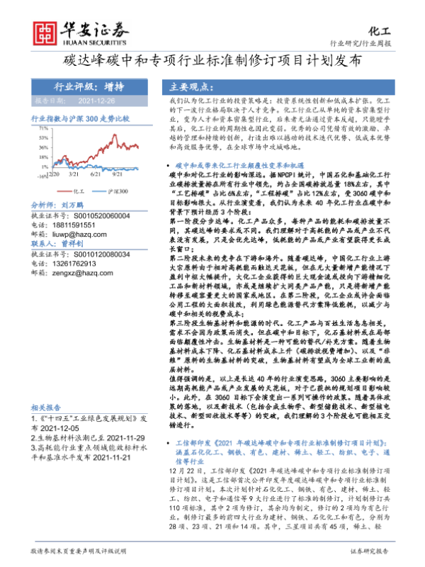 【华安证券】【20211226】20211226-华安证券-化工行业周报:碳达峰碳中和专项行业标准制修订项目计划发布-59页