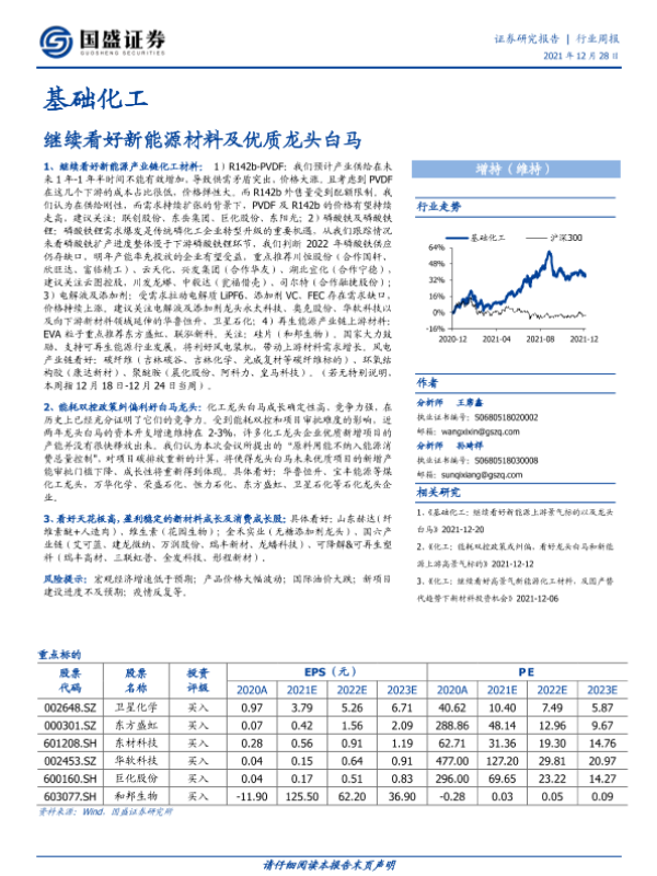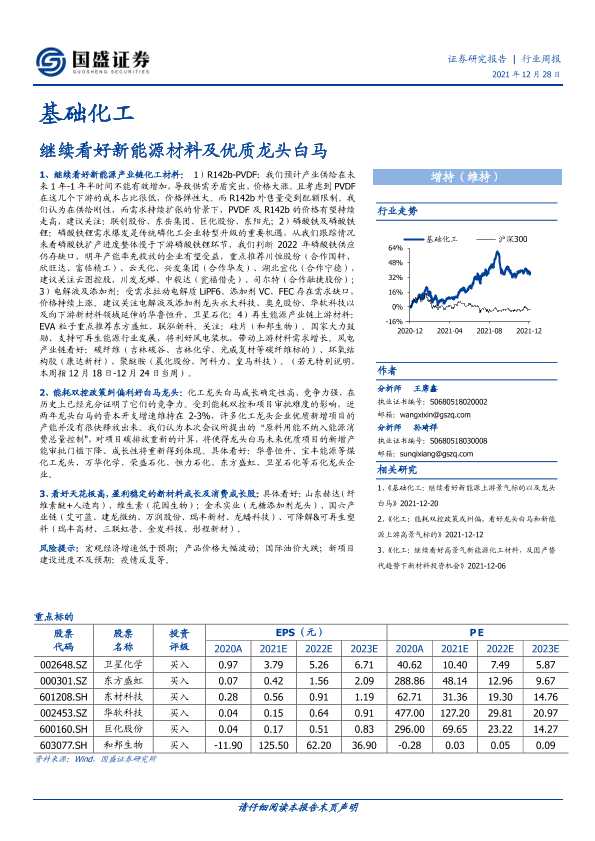 【国盛证券】【20211228】基础化工行业周报:继续看好新能源材料及优质龙头白马-14页