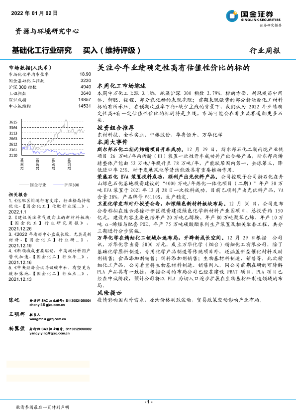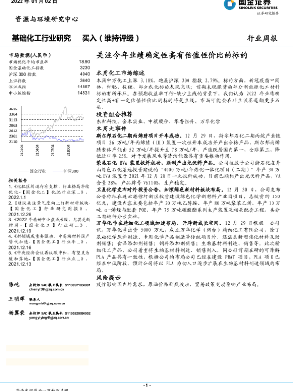 【国金证券】【20220102】基础化工行业研究:关注今年业绩确定性高有估值性价比的标的-23页