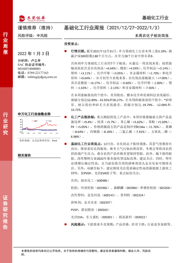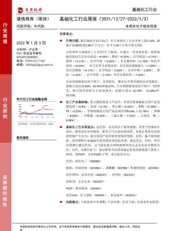 【东莞证券】【20220103】20220103-东莞证券-基础化工行业周报:本周农化子板块领涨-9页