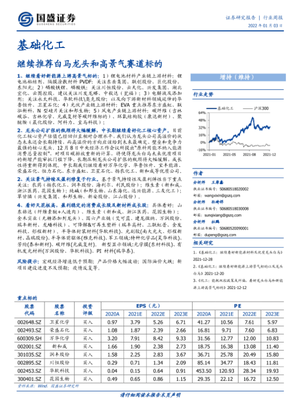 【国盛证券】【20220103】基础化工行业周报:继续推荐白马龙头和高景气赛道标的-12页