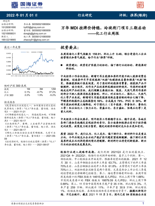 【国海证券】【20220101】20220101-国海证券-化工行业周报:万华MDI挂牌价持稳,玲珑荆门项目三期启动-52页