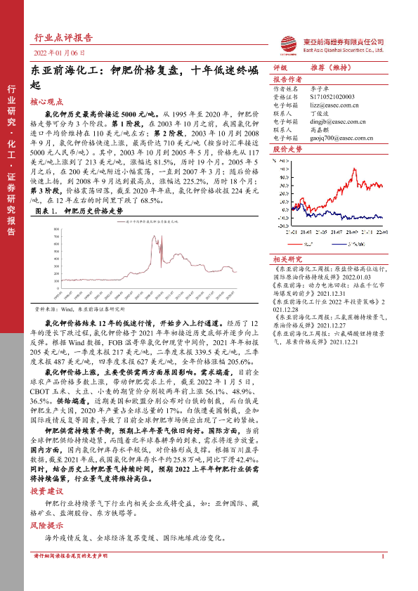 【东亚前海证券】【20220106】东亚前海化工:钾肥价格复盘,十年低迷终崛起-3页