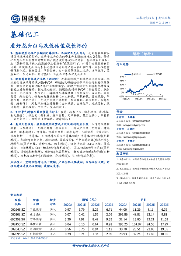 【国盛证券】【20220110】基础化工行业周报:看好龙头白马及低估值成长标的-8页
