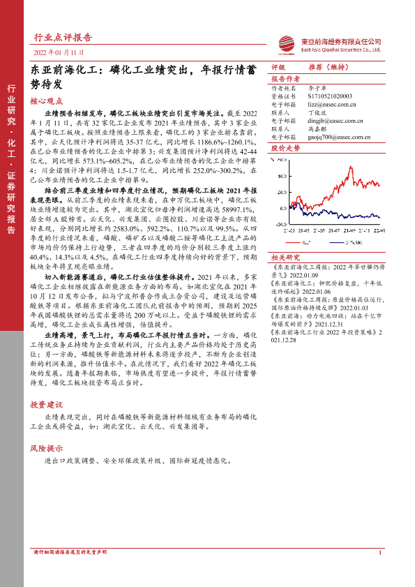 【东亚前海证券】【20220111】东亚前海化工:磷化工业绩突出,年报行情蓄势待发-3页