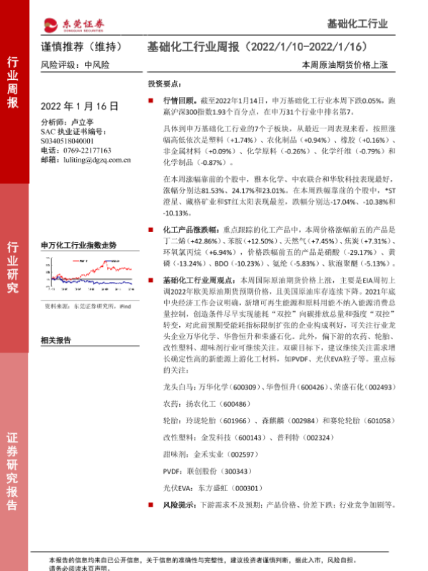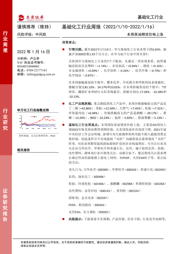 【东莞证券】【20220116】基础化工行业周报:本周原油期货价格上涨-10页