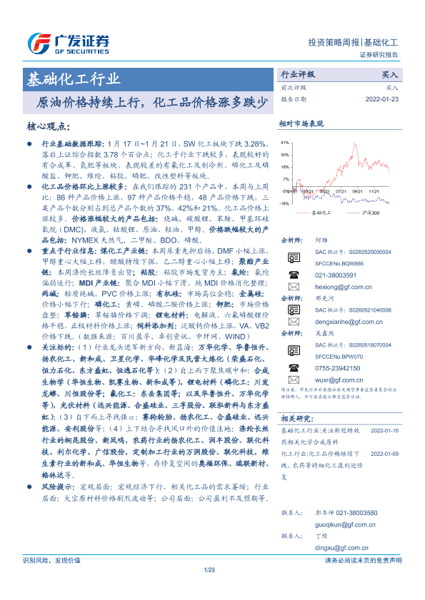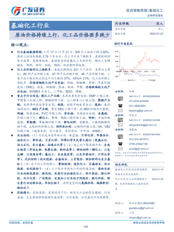 【广发证券】【20220123】20220123-广发证券-基础化工行业投资策略周报:原油价格持续上行,化工品价格涨多跌少-23页
