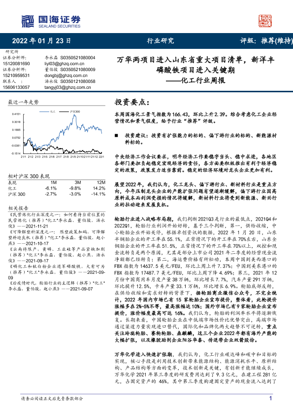 【国海证券】【20220123】20220123-国海证券-化工行业周报:万华两项目进入山东省重大项目清单,新洋丰磷酸铁项目进入关键期-53页