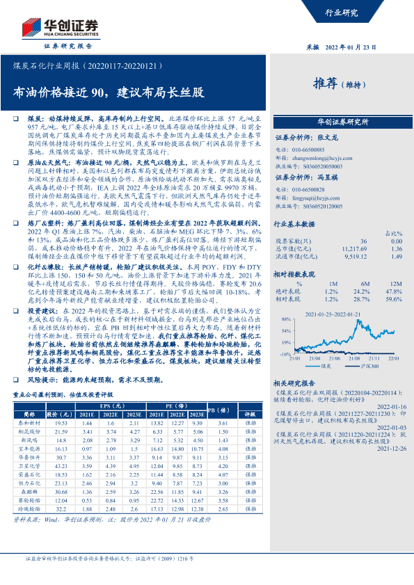 【华创证券】【20220123】20220123-华创证券-煤炭石化行业周报:布油价格接近90,建议布局长丝股-21页