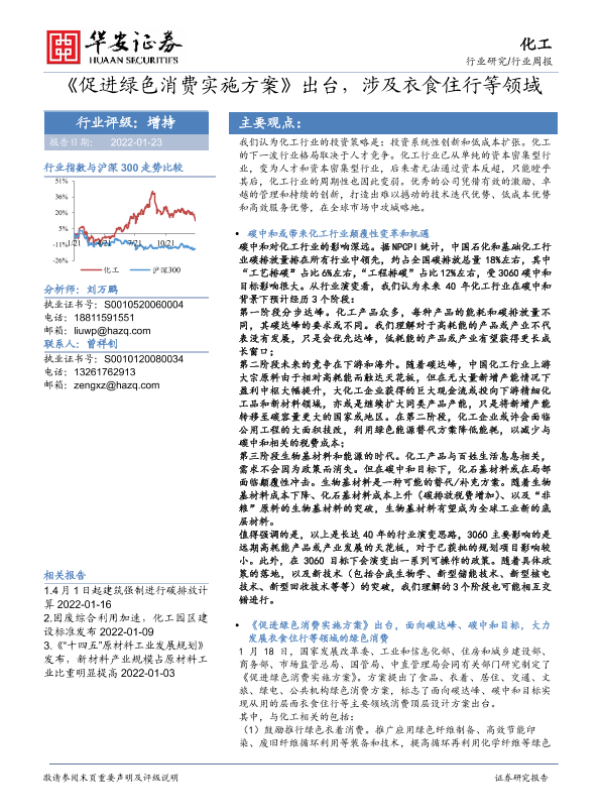 【华安证券】【20220123】20220123-华安证券-化工行业周报:《促进绿色消费实施方案》出台,涉及衣食住行等领域-73页
