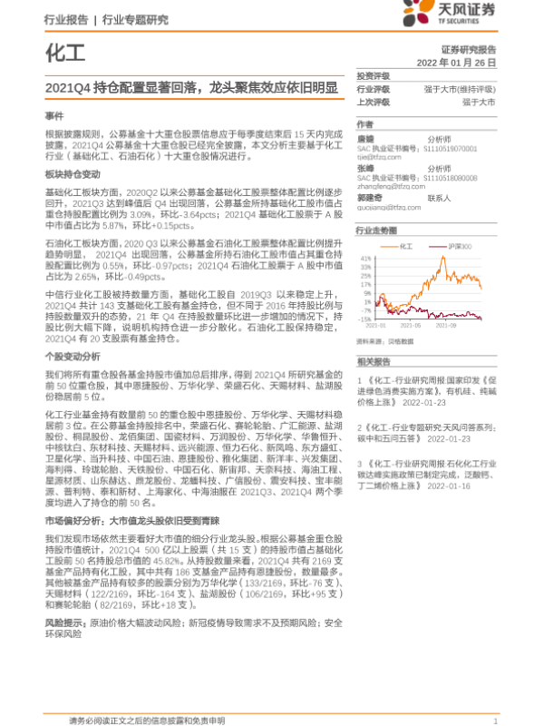 【天风证券】【20220126】20220126-天风证券-化工行业专题研究:2021Q4持仓配置显著回落,龙头聚焦效应依旧明显-17页