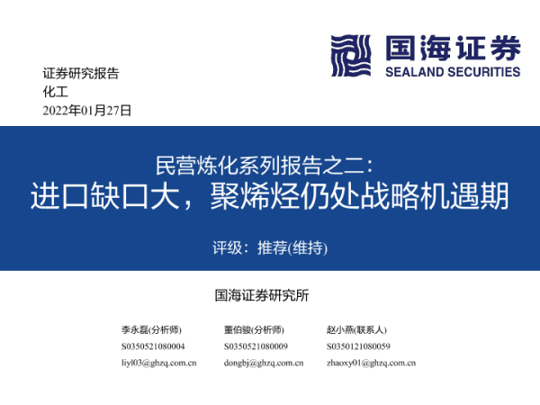 【国海证券】【20220127】民营炼化系列报告之二:进口缺口大,聚烯烃仍处战略机遇期-61页