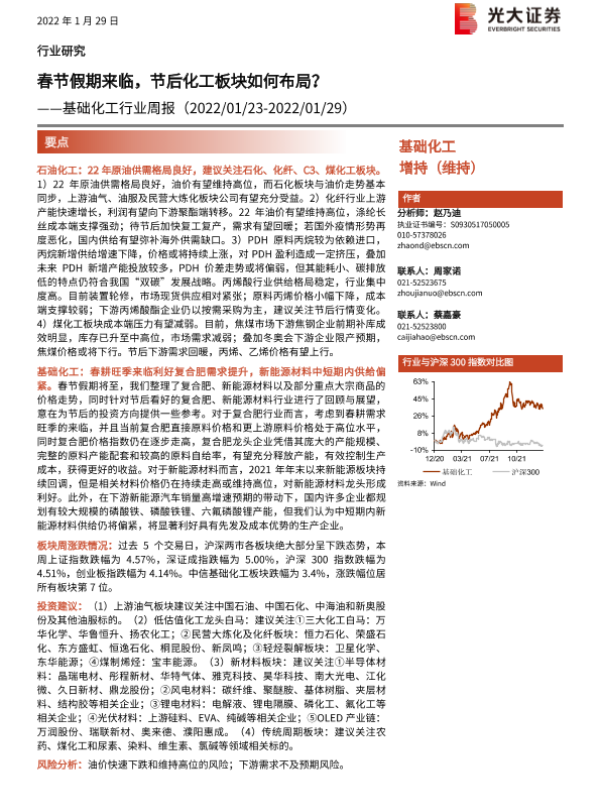 【光大证券】【20220129】基础化工行业周报:春节假期来临,节后化工板块如何布局?-33页
