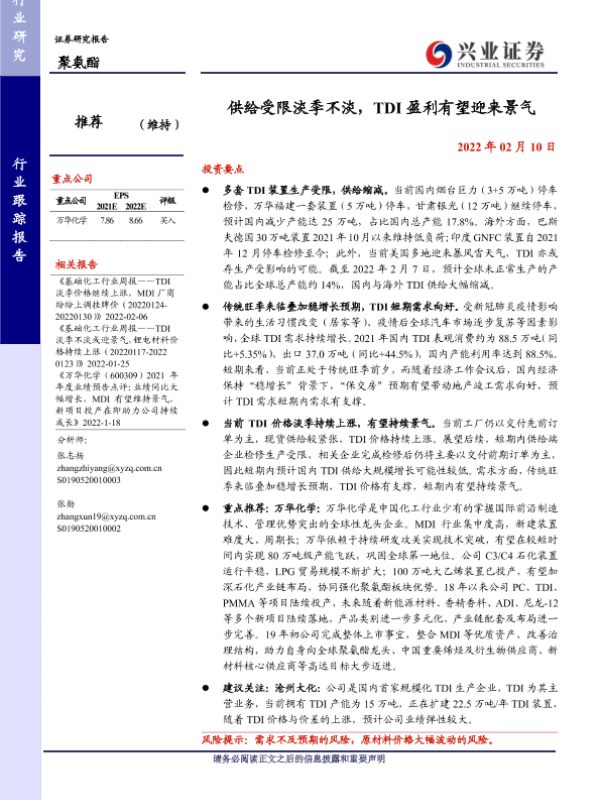 【兴业证券】【20220210】供给受限淡季不淡,TDI盈利有望迎来景气-7页