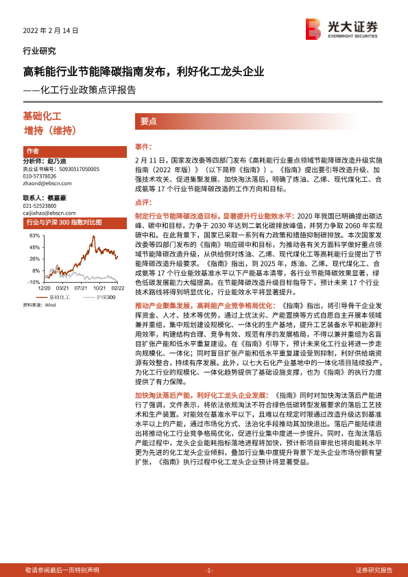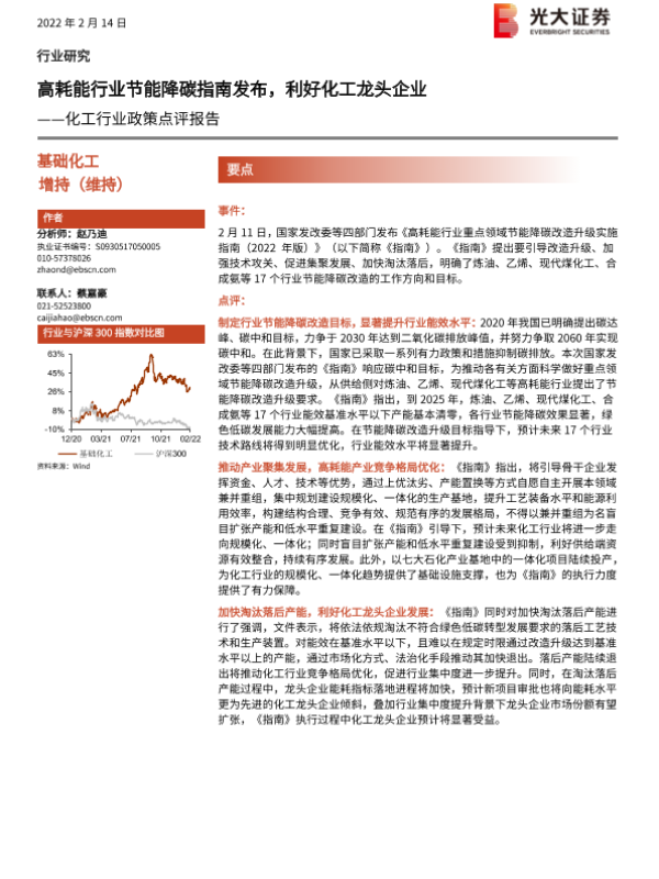 【光大证券】【20220214】20220214-光大证券-化工行业政策点评报告:高耗能行业节能降碳指南发布,利好化工龙头企业-5页