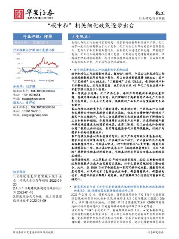 【华安证券】【20220213】20220213-华安证券-化工行业周报:“碳中和”相关细化政策逐步出台-65页