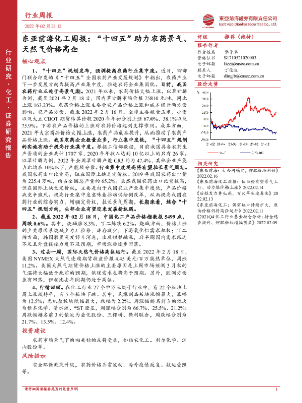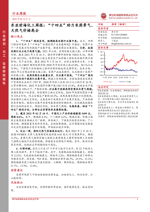 【东亚前海证券】【20220221】东亚前海证券-化工周报:“十四五”助力农药景气、天然气价格高企-21页