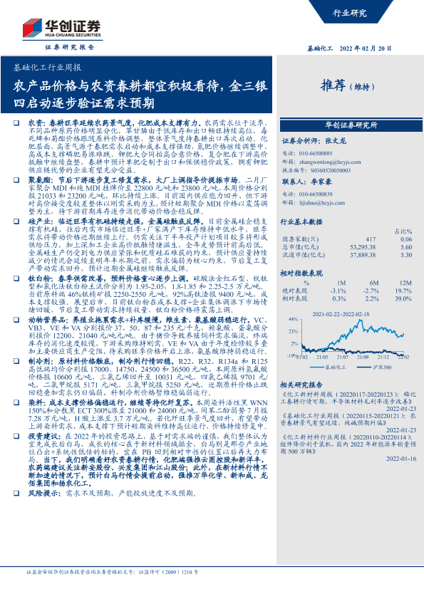 【华创证券】【20220220】基础化工行业周报:农产品价格与农资春耕都宜积极看待,金三银四启动逐步验证需求预期-24页