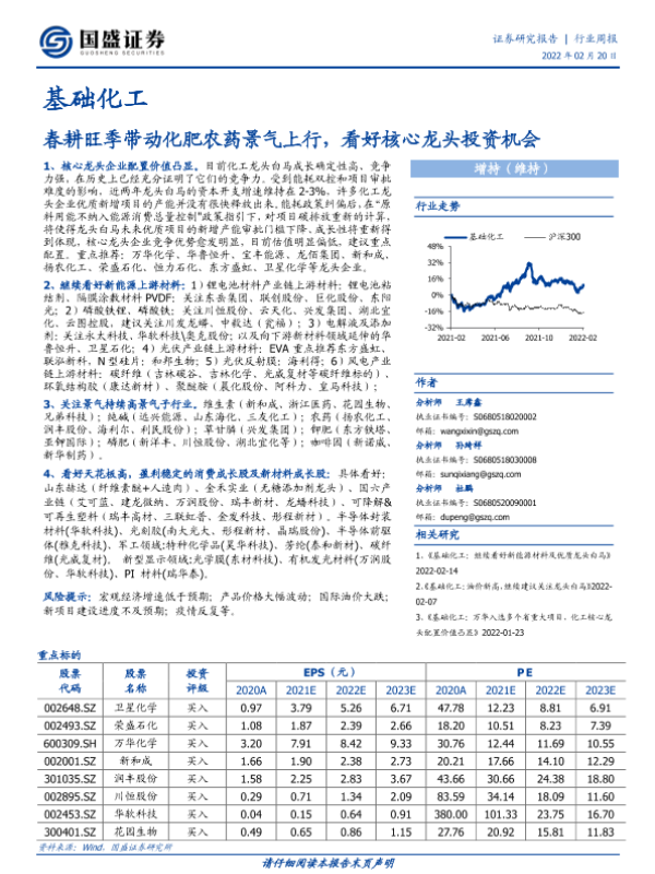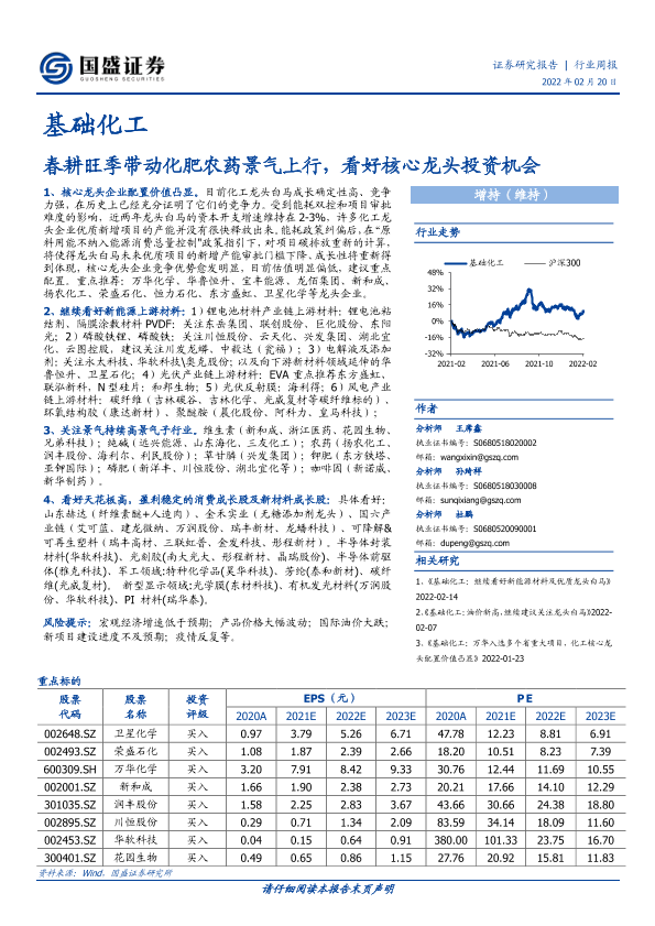 【国盛证券】【20220220】基础化工行业周报:春耕旺季带动化肥农药景气上行,看好核心龙头投资机会-12页