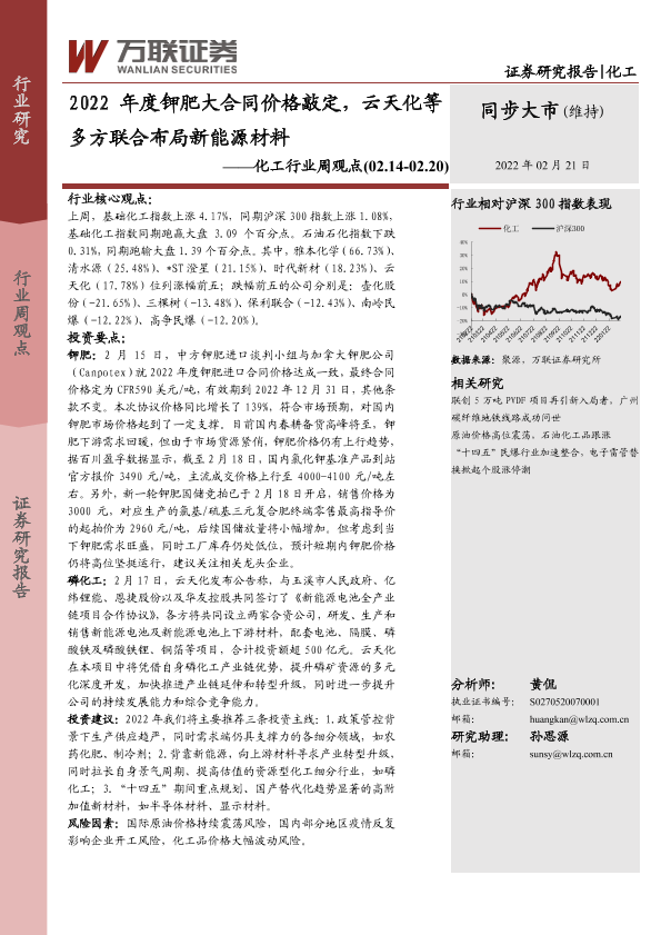 【万联证券】【20220221】2022年度钾肥大合同价格敲定,云天化等多方联合布局新能源材料-11页