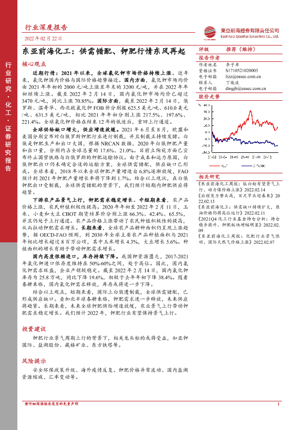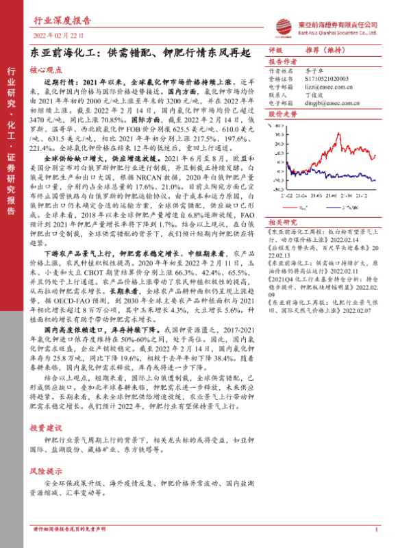 【东亚前海证券】【20220222】东亚前海化工:供需错配、钾肥行情东风再起-45页