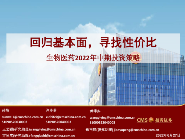 【海通证券】【20220627】生物医药行业2022年中期投资策略:回归基本面,寻找性价比-54页