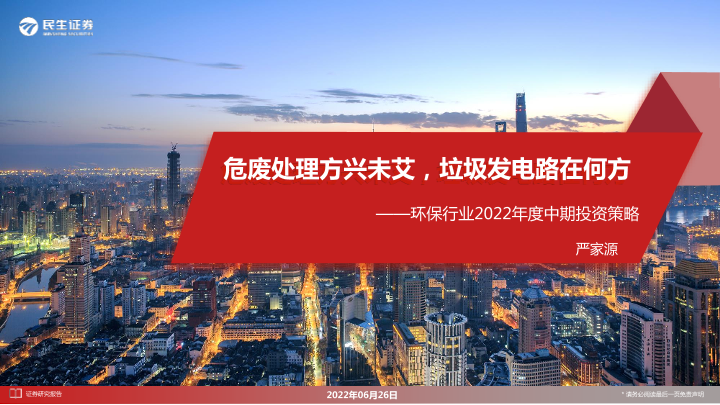 【民生证券】【20220626】环保行业2022年度中期投资策略:危废处理方兴未艾,垃圾发电路在何方-25页
